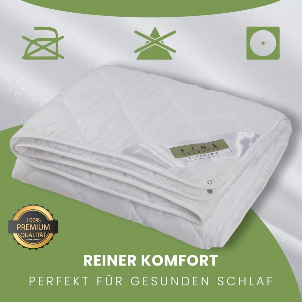 Pflegeleicht & Hygienisch – Bettdecken und Kissen maschinenwaschbar bis 90 °C, trocknergeeignet, langlebig und einfach zu pflegen. Ideal für sauberen, hygienischen und erholsamen Schlaf das ganze Jahr über.