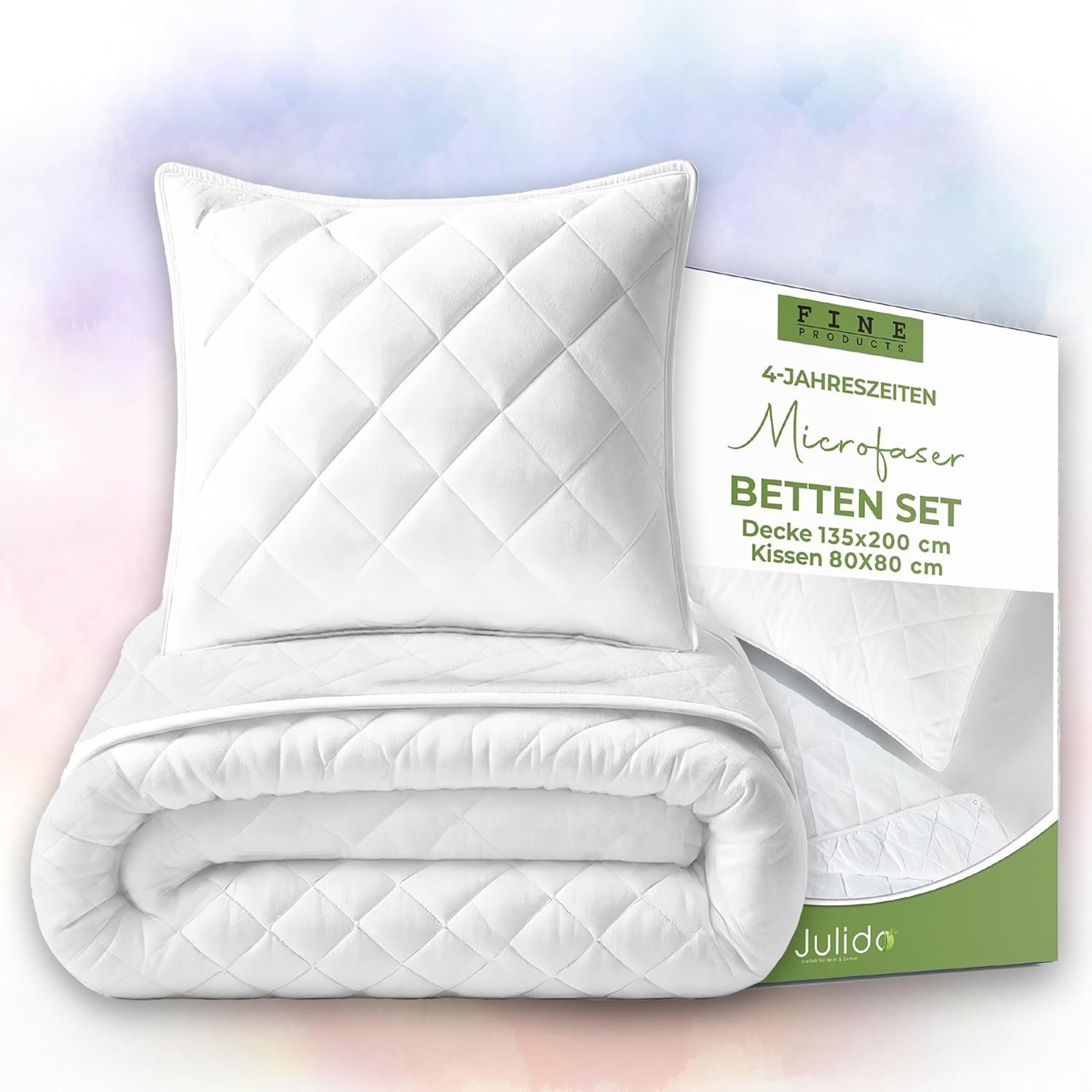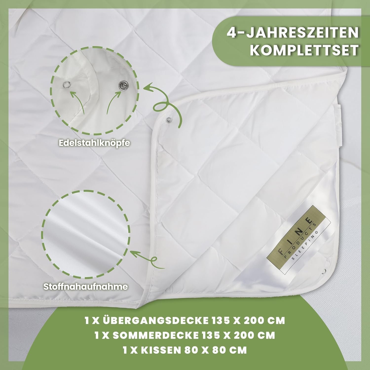 Premium 4-Jahreszeiten Bettdecken Set 135×200 cm – Bettdecken (leichte Sommerdecke & warme Übergangsdecke) + Kissen 80×80 cm, Ganzjahresbett für Winter, Frühling, Sommer & Herbst, kombinierbar zu extra warmem Winterbett, kuschelig weich und atmungsaktiv.
