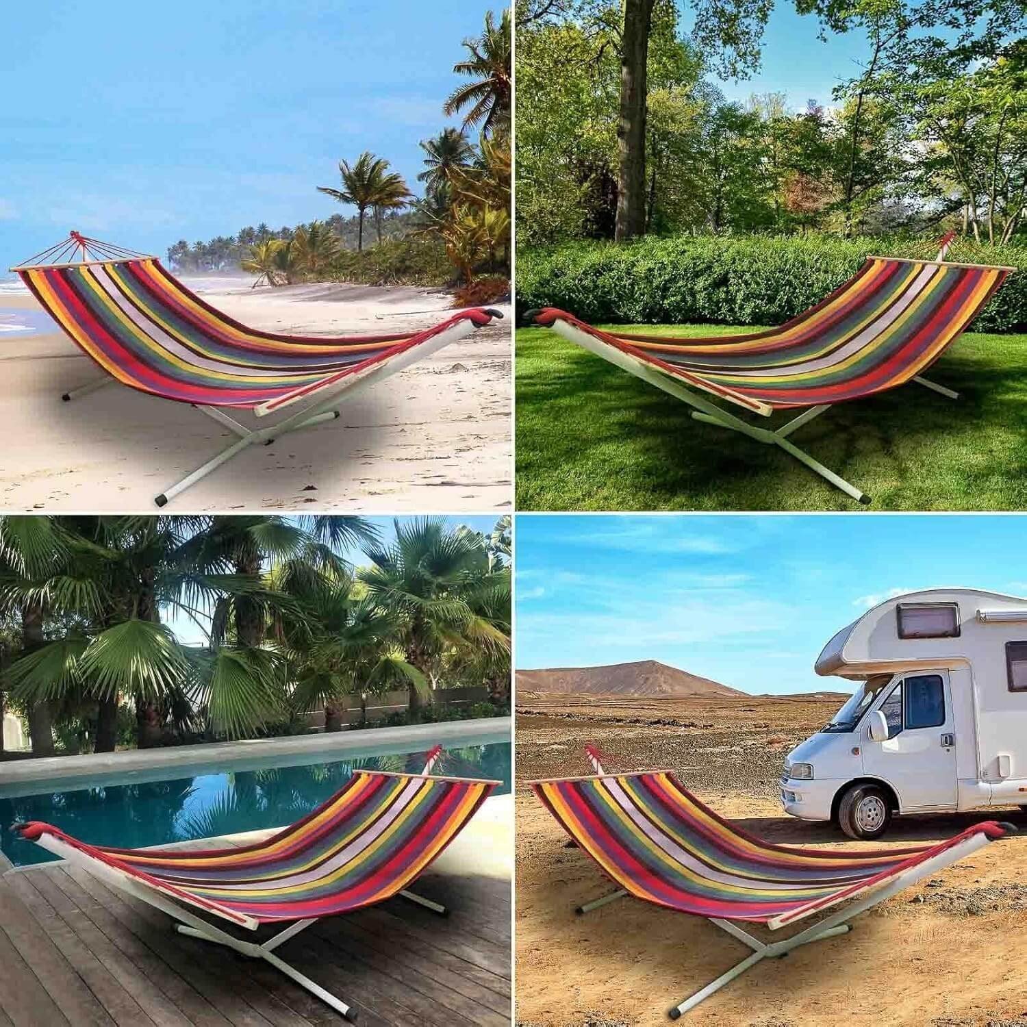 Vielseitig einsetzbar: Ob im eigenen Garten, am Pool oder beim Camping – dank des geringen Packmaßes kannst du das Gestell für Hängematten überall hin mitnehmen und schnell auf- und abbauen. So kannst du immer an deinem Lieblingsplatz entspannen.