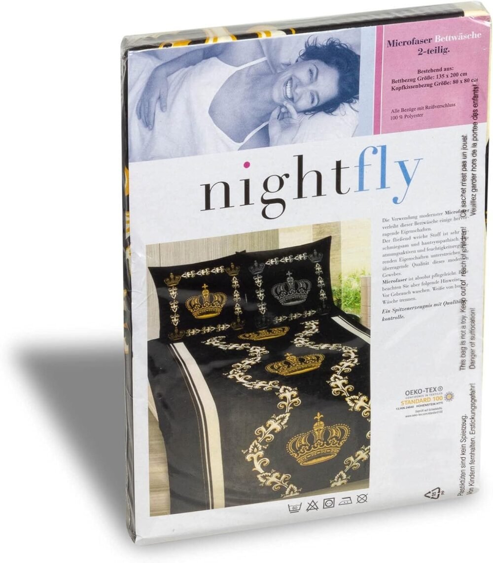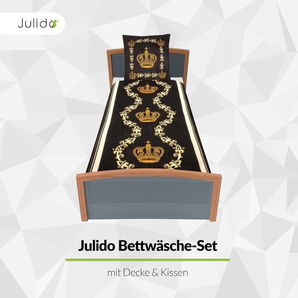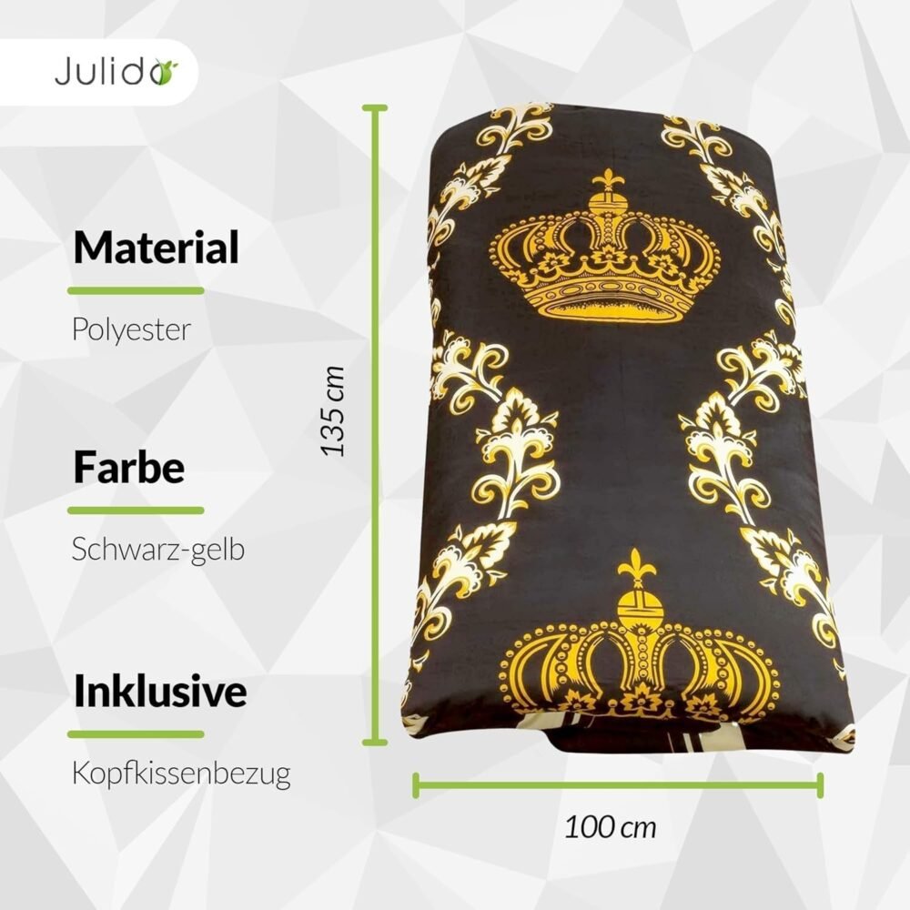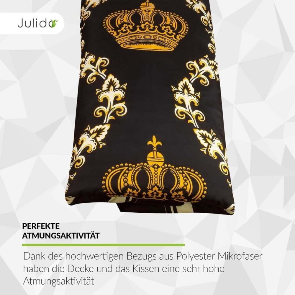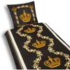 DESIGN: Das Bettwäsche-Set in Schwarz und Gold mit dem Motiv einer Krone setzt einen edlen Akzent in Ihrem Schlafzimmer. Schlafen Sie wie ein König in unserer kühlenden Bettwäsche aus Mikrofaser.