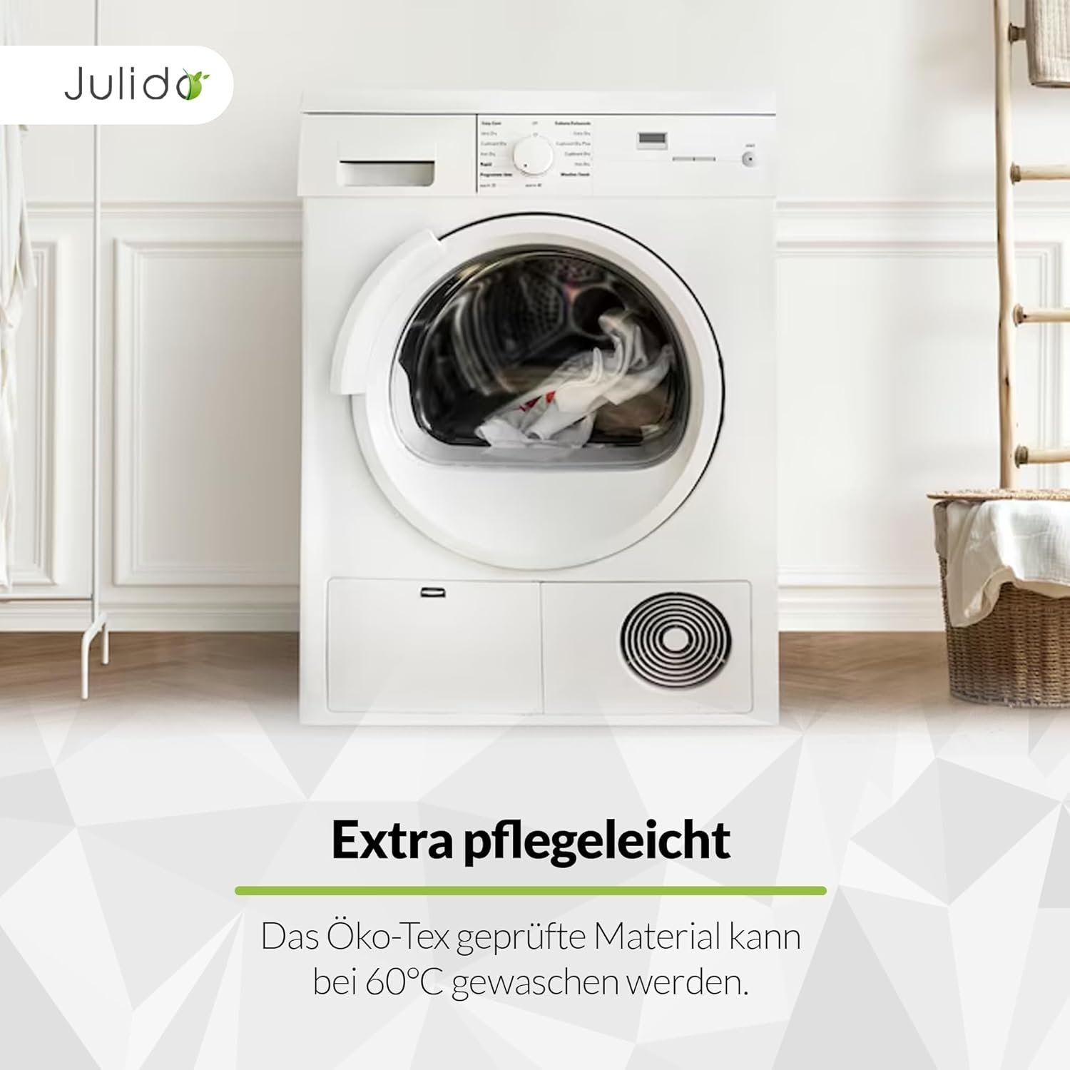 PFLEGEHINWEIS: Der Bettdeckenbezug und der Kopfkissenbezug können bei 60°C in der Maschine gewaschen werden und sind trocknergeeignet.