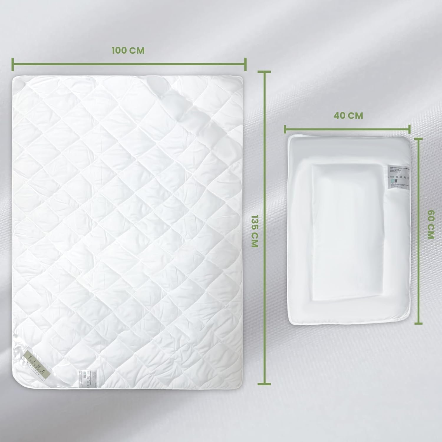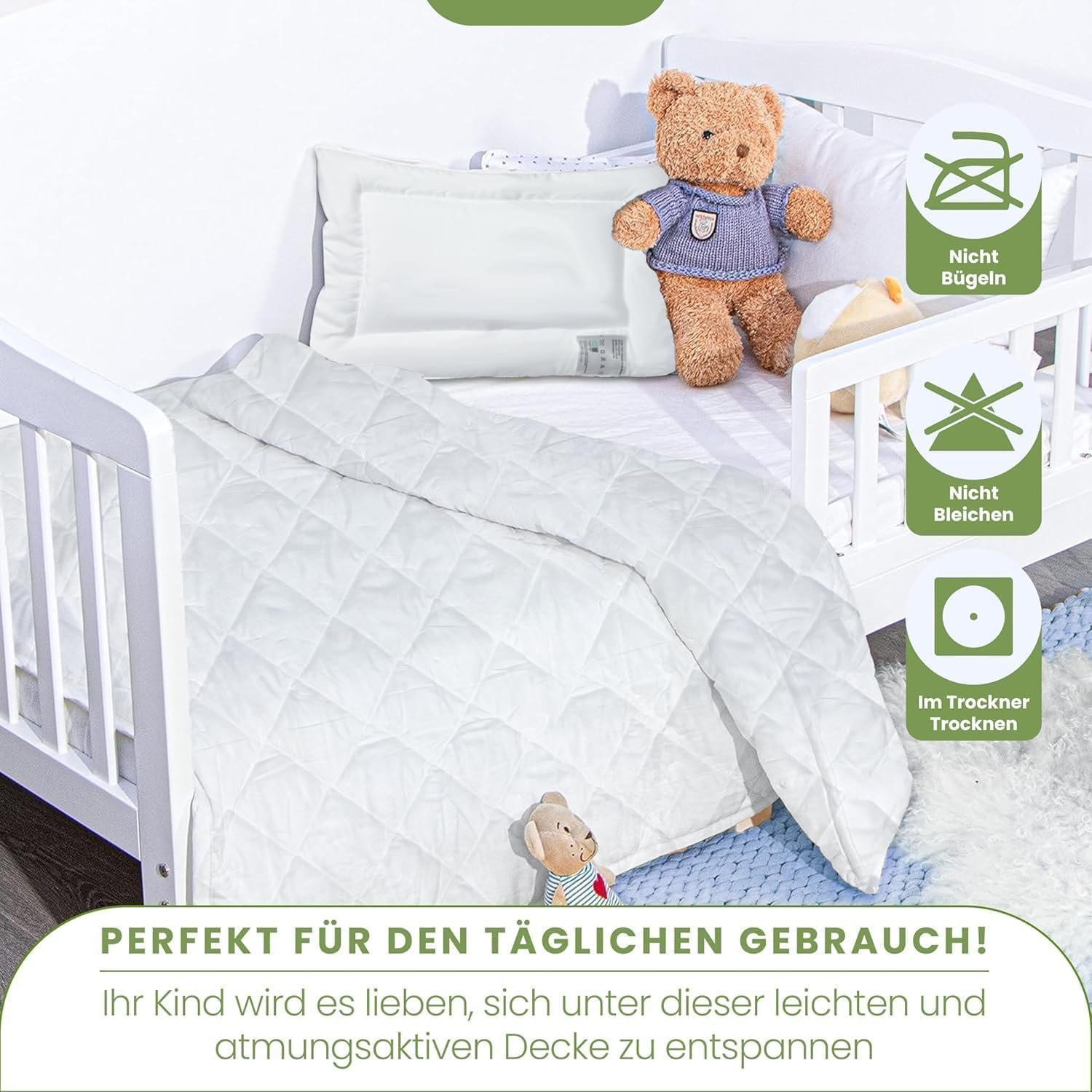 Komplettes Set für erholsamen Schlaf – Das Set enthält eine Decke (100×135 cm) und ein Kissen (40×60 cm), perfekt für Kinderbetten oder als Kuschelset.