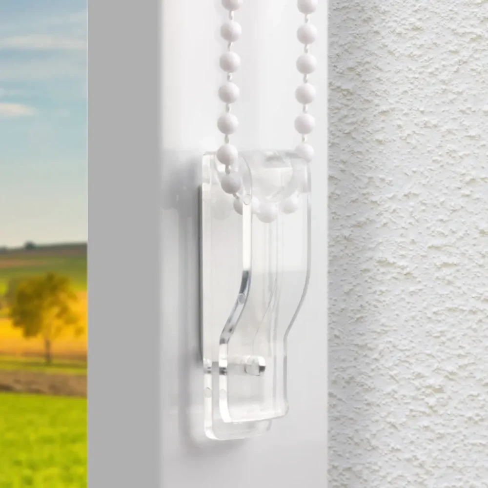 Er verfügt natürlich über eine Kindersicherung, die bei stärkerem Zug die Kette automatisch trennt und lässt sich zudem am Fensterflügel befestigen.