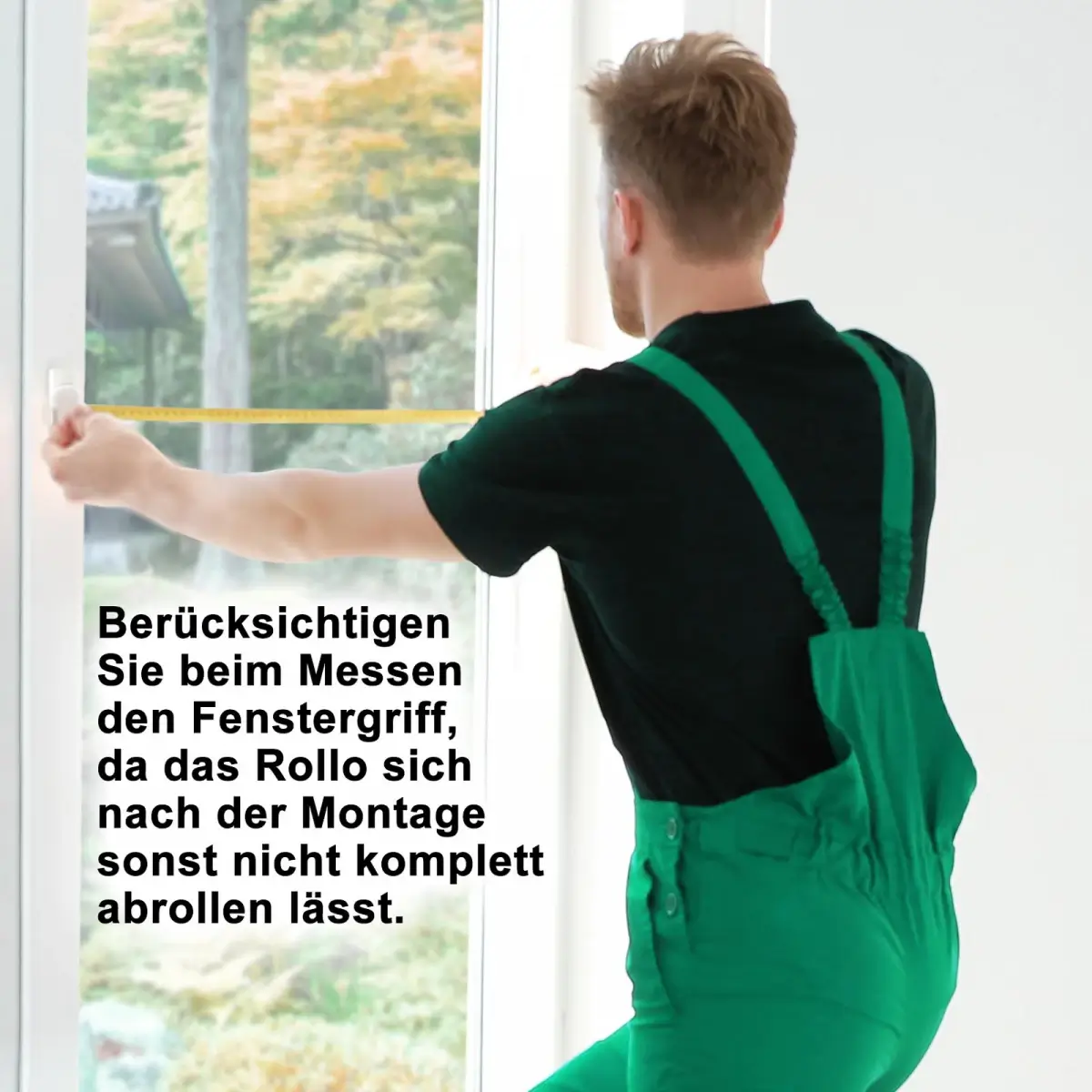 Berücksichtigen Sie beim Messen auch den Fenstergriff, da das Rollo sich nach der Montage sonst nicht komplett abrollen lässt.