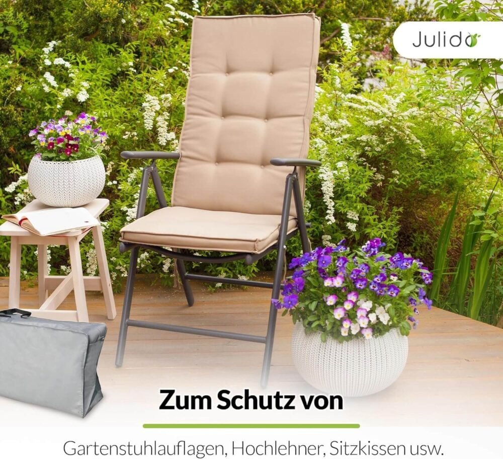 Langlebig: Die hochwertige Verarbeitung und das strapazierfähige Material machen die Julido Gartenstuhlauflagentasche zur idealen Wahl für jede Jahreszeit.